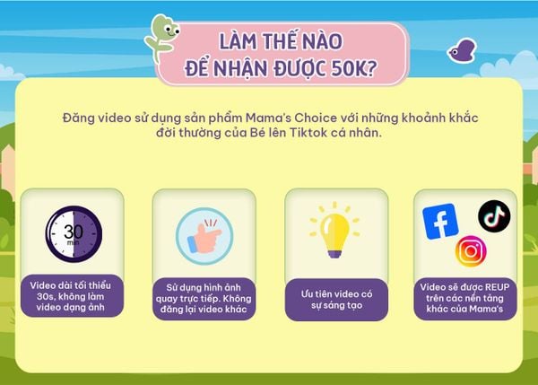 - Cơ hội nhận ngay 50K cùng hoa hồng 10% khi Ba Mẹ làm idol Tiktok cùng Mama's Choice.
