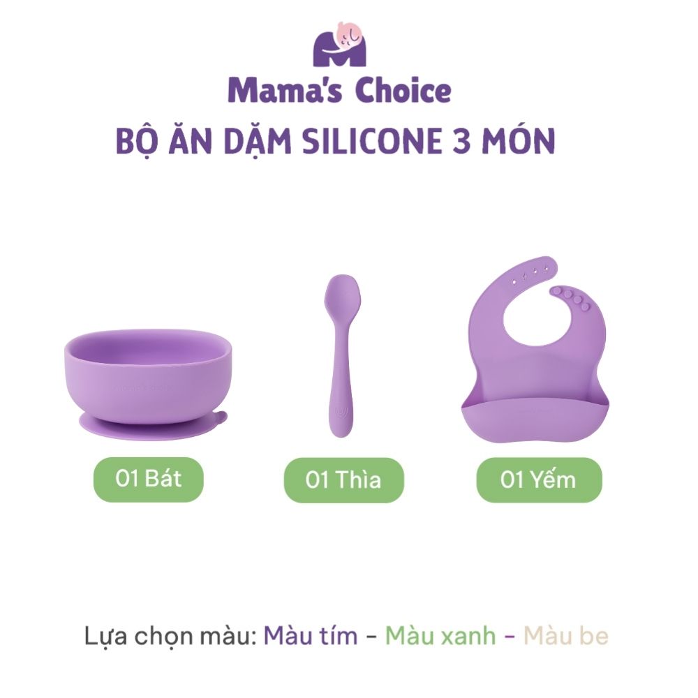 Bộ Ăn Dặm Silicone 5 Món Mama’s Choice là giải pháp tiện lợi và an toàn, đồng hành cùng mẹ từ những ngày đầu bé tập ăn.