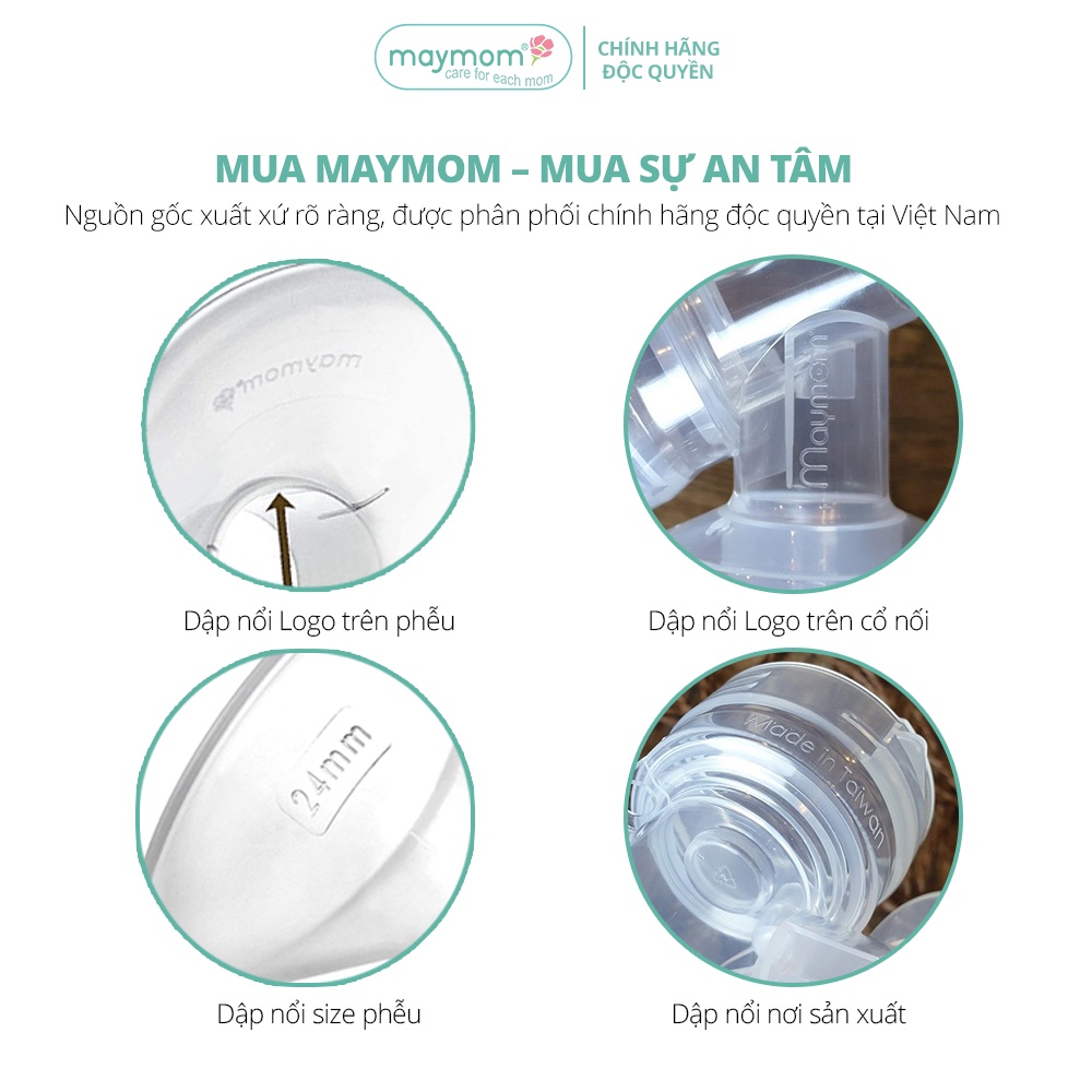 Maymom chuyên sản xuất phụ kiện Máy hút sữa với tiêu chí “Quan tâm đến nhu cầu nhỏ nhất của mỗi người mẹ”, phụ kiện Maymom sản xuất cải tiến để mang lại sự thuận tiện tối đa cho người sử dụng, chất lượng tương đương hoặc tốt hơn Phụ kiện nguyên bản đi kèm Máy hút sữa.