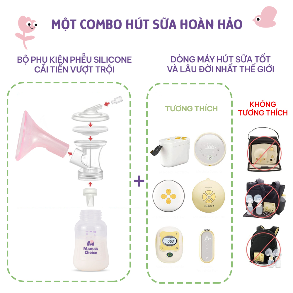 - Bộ Phụ kiện phễu hút sữa Silicone tương thích 100% với máy hút sữa