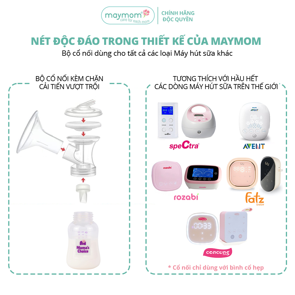 Đặc điểm sản phẩm cổ nối máy hút sữa cho bình sữa cổ hẹp do Maymom sản xuất: