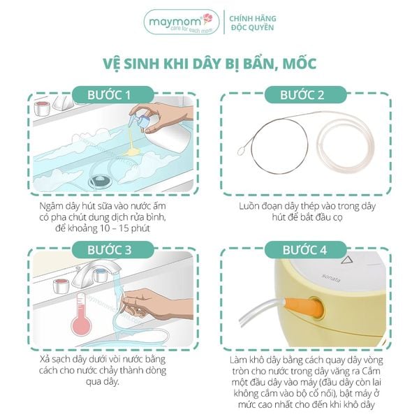 Hướng dẫn vệ sinh dây hút cho máy hút sữa Medela Sonata: