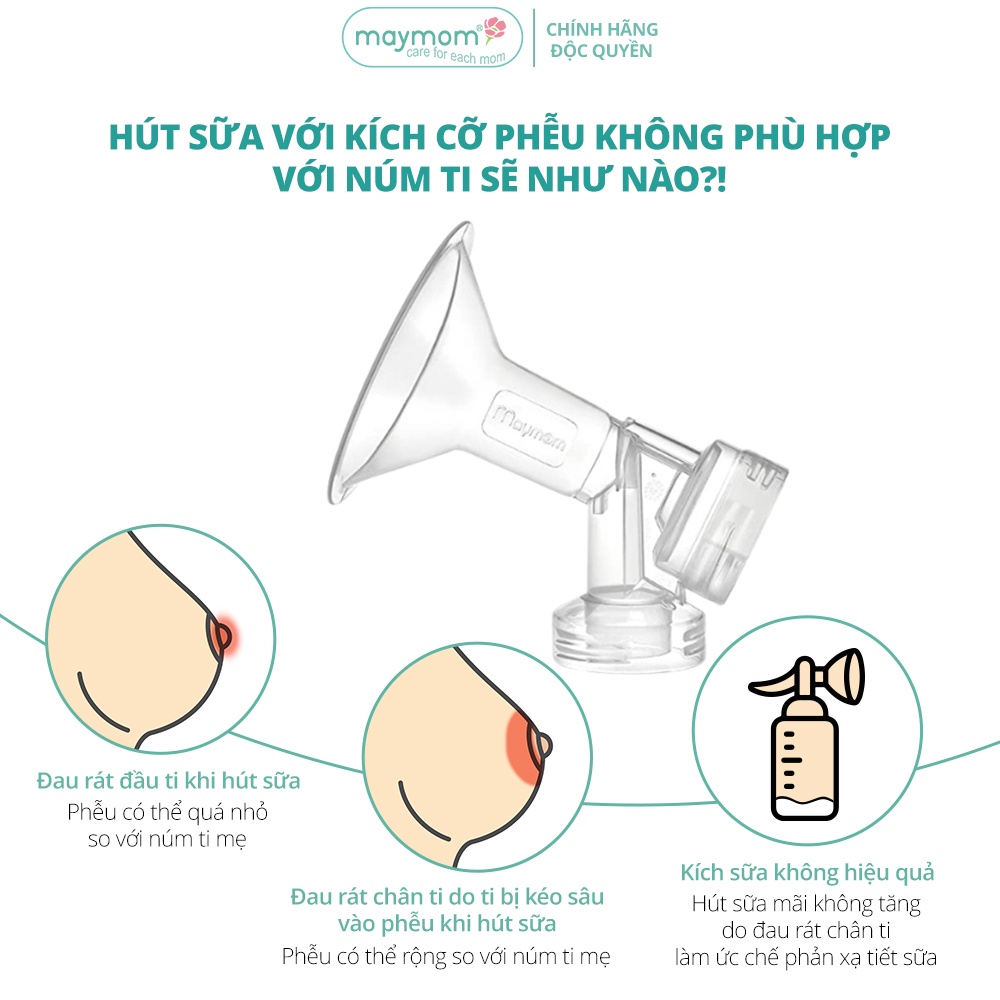 - Size phễu chưa phù hợp với núm ti của mẹ, khiến đầu ti mẹ đau rát, sưng đỏ hoặc hút sữa thiếu hiệu quả
