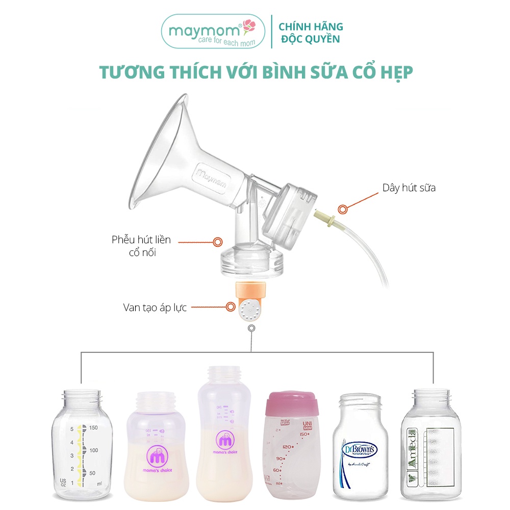 Maymom chuyên sản xuất phụ kiện Máy hút sữa với tiêu chí “Quan tâm đến nhu cầu nhỏ nhất của mỗi người mẹ”, phụ kiện Maymom sản xuất cải tiến để mang lại sự thuận tiện tối đa cho người sử dụng, chất lượng tương đương hoặc tốt hơn Phụ kiện nguyên bản đi kèm Máy hút sữa.