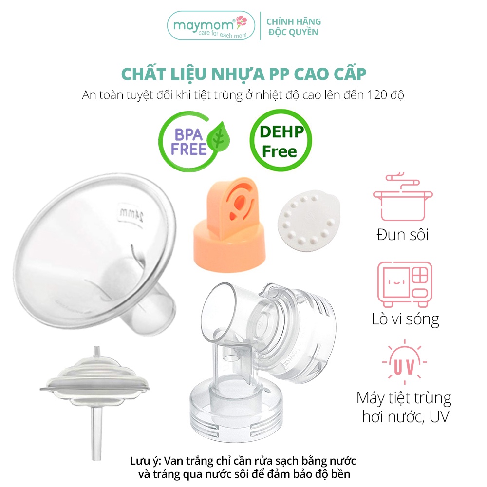 - Phụ kiện Maymom được thiết kế đơn giản, dễ sử dụng và vệ sinh cọ rửa, mang lại sự tiện lợi cao cho các mẹ